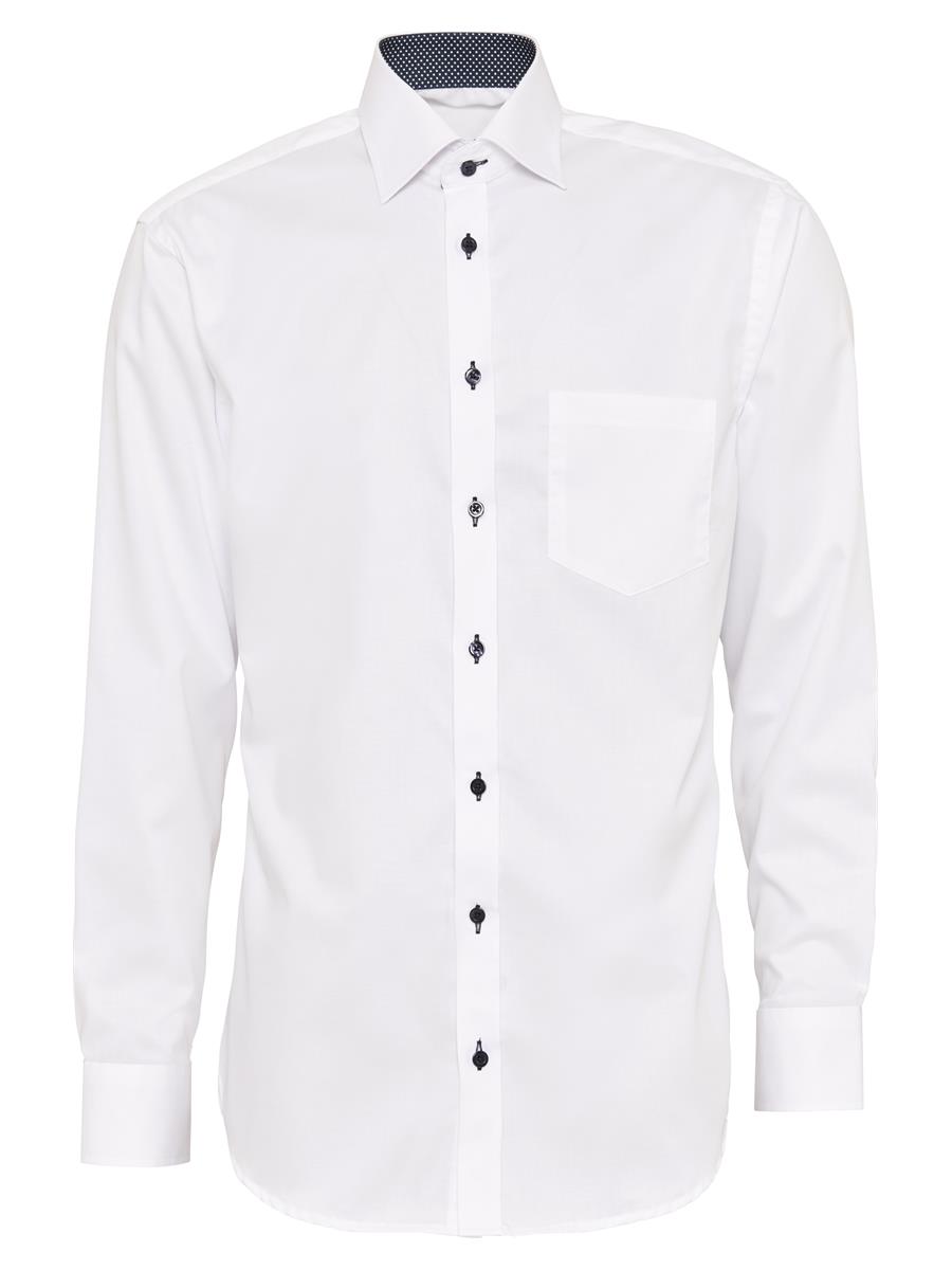 Farve: Hvid med kontrast i flip og manchetter