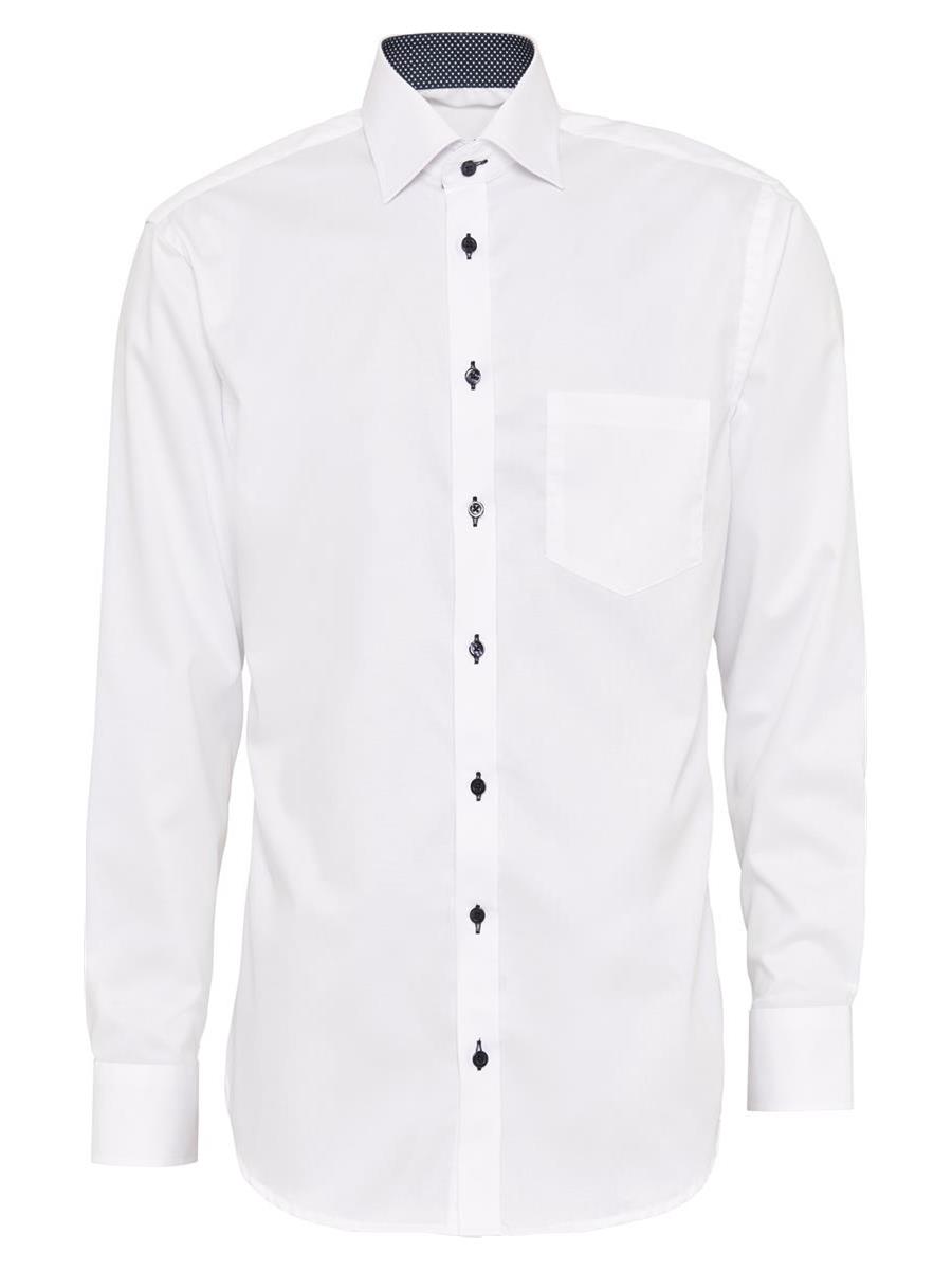 Farve: Hvid med kontrast i flip og manchetter