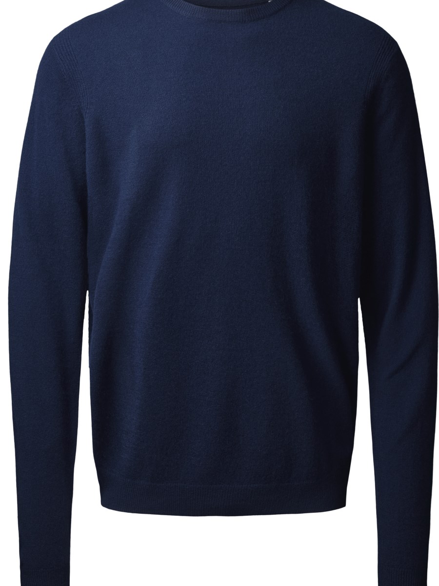 O-neck pullover med ribkant ved ærmer og forneden samt ribdetaljer ved skuldersøm.