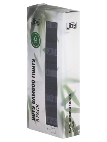 JBS Bamboo 5-pack tights. Nu findes de populære Bambus tights også til drenge. Har du endnu ikke prøvet bambus undertøj kan vi bestemt anbefale det. Bambus undertøjet er ekstra blødt og lader huden ånde og kombineret med den økologiske bomuld, gør det dem utrolig behagelige at have på. Dette skal drenge også have mulighed for nu og vi er sikre på at de bliver blandt favoritterne i undertøjsskuffen. JBS Boys produkter er som det første undertøj i verden FSC certificeret fra bambus til færdigt produkt. Dette skyldes en unik metode, hvor vand genbruges og påvirkningen af vores allesammens miljø er derfor yderst minimal.